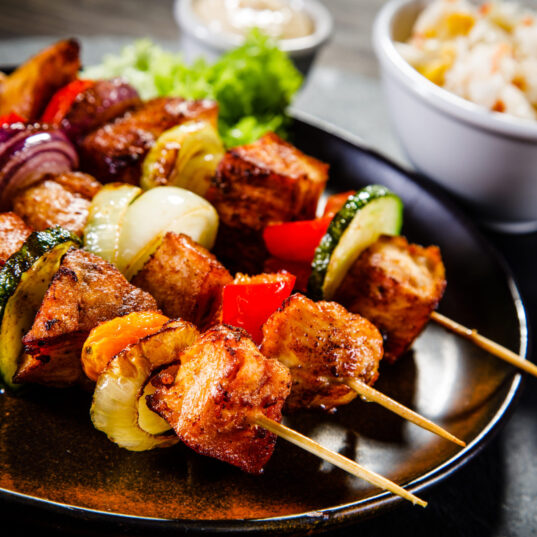 sweet, sour, spicy, Great Taste Award Wining BBQ Spice Blend elevates a piece of chicken into succulent and delicious skewers.