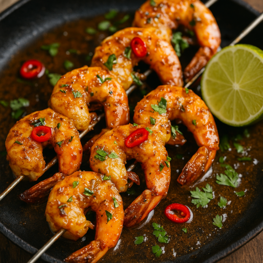- Grill the Prawns: Skewer the prawns or place them in a BBQ basket. Grill for 2–3 minutes per side until pink and lightly charred.