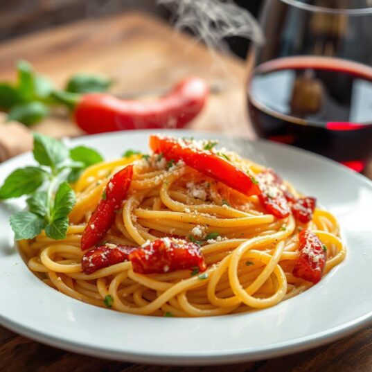 - In a large bowl toss the pasta with the sauce. Sprinkle with grated Parmesan.