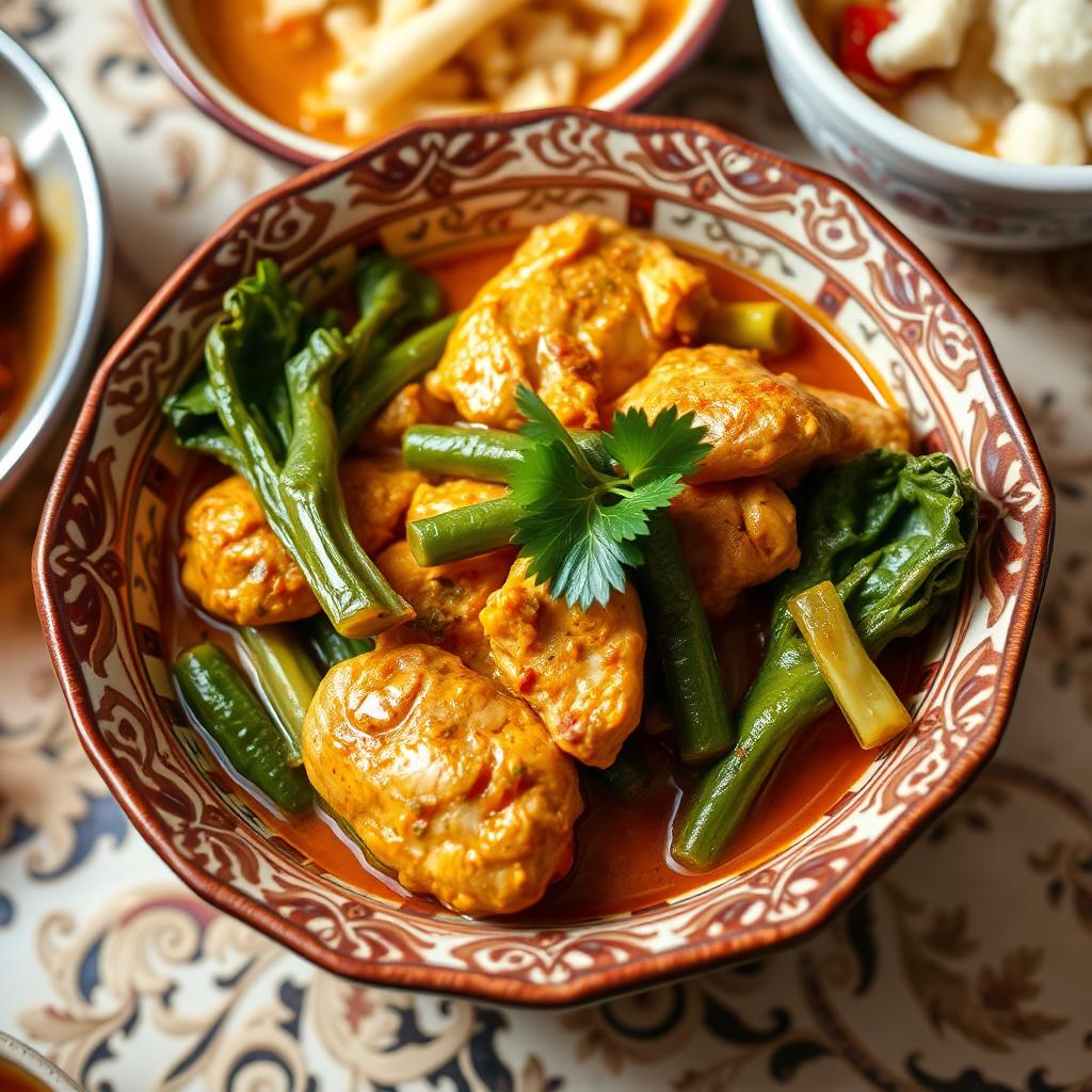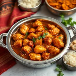 - Serve with jasmine rice garnished with fresh coriander leaves, cashew nuts and the bird’s-eye chilli.