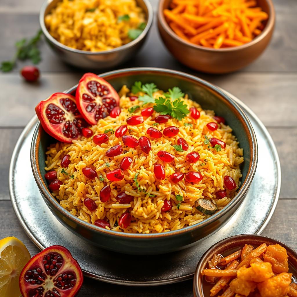 4. Turn down the heat to a simmer and cook for 25 mins. Then, still keeping the pan covered, take off the heat and leave to rest for 10 minutes. Scatter with pomegranate seeds before serving.