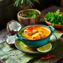 - While the oil is heating make the batter. Mix the flour, yoghurt and cold water until smooth and thick (like double cream) and stir in Shemin’s Seafood Curry Paste.