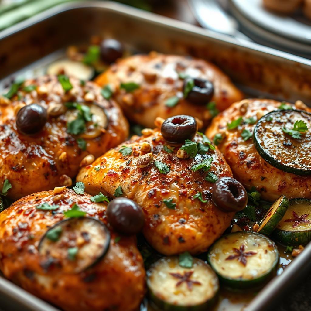 - Scatter the tomatoes, lemon wedges, fennel, apricots and garlic, over the base of a large baking tray or ovenproof dish that’ll easily accommodate the chicken in a single layer, then sit the chicken on top. Mix the red wine vinegar with 2 tbsp of water and any remaining marinade, then drizzle over the chicken. Roast for 45 minutes.