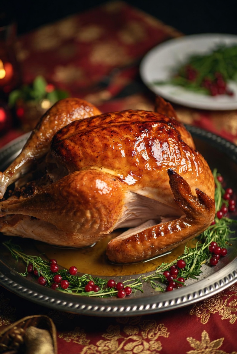 • Brush some of the mixture on the turkey and the rest under the skin of the turkey.