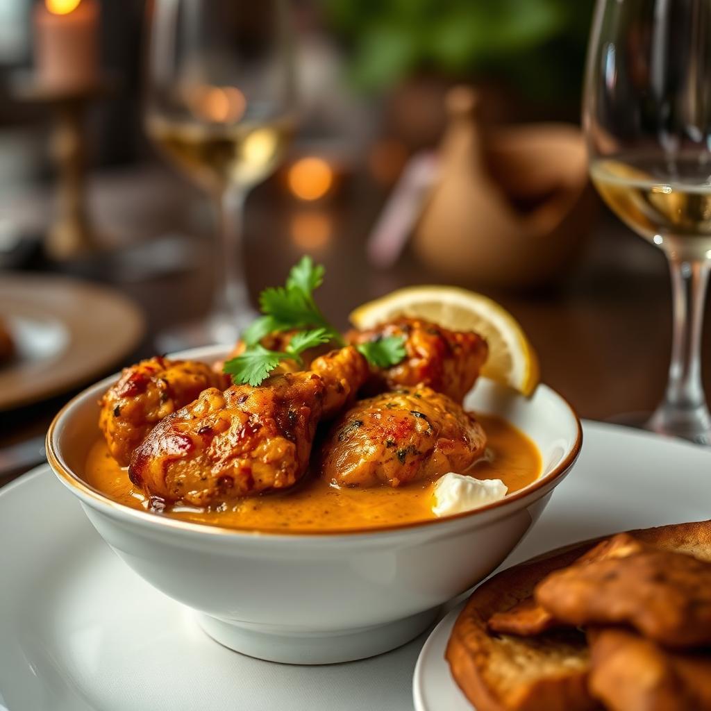 4. Pour the sauce on the chicken or serve separately. Garnish with fresh coriander.